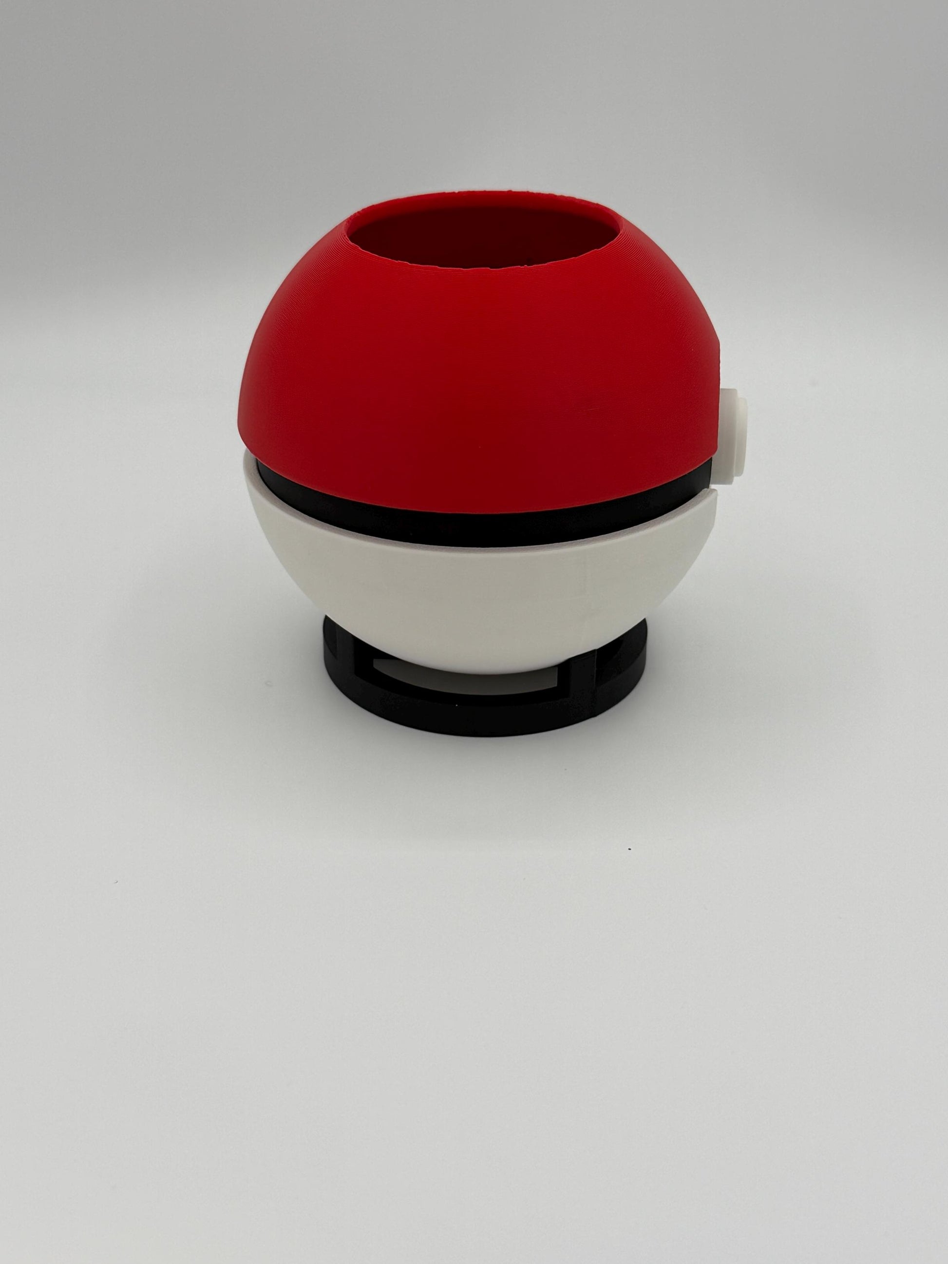 The Pokeball pen holder is a playful workspace accessory designed to keep your desk tidy while celebrating your love for Pokemon. This durable pen container measures 4 inches high by 6 inches wide and features a 12-inch round shape with a 2 1/4 inch wide by 2 1/2 inch deep interior hole, perfect for organizing pens, pencils, or small succulents. Handmade Canadian decor crafted through advanced 3D printing technology ensures each piece is unique and compliant with CUSMA regulations for duty-free US shipping.