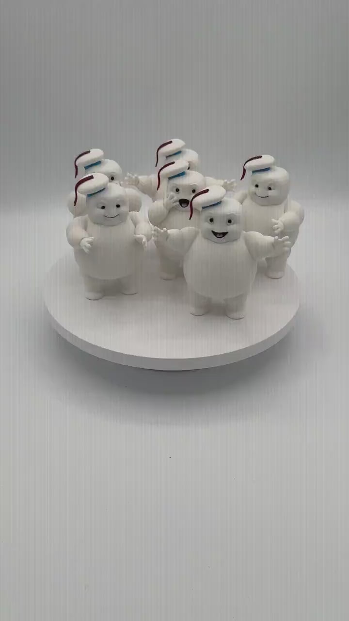 Stay Puft Marshmallow Men bring nostalgic charm and playful artistry to your collection with this handcrafted collectible set of six mini Ghostbusters figurines. Each Stay Puft Marshmallow Men figure stands approximately 10 cm tall and is meticulously 3D printed mini figure that captures the iconic sailor hat and marshmallow face, delivering a perfect blend of retro movie collectibles and modern craftsmanship. Designed as unique cake toppers, Halloween party favors, or home decoration pieces, these mini marshmallow toys make an ideal Ghostbusters fan gift or birthday gift idea that sparks joy and conversation.
